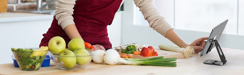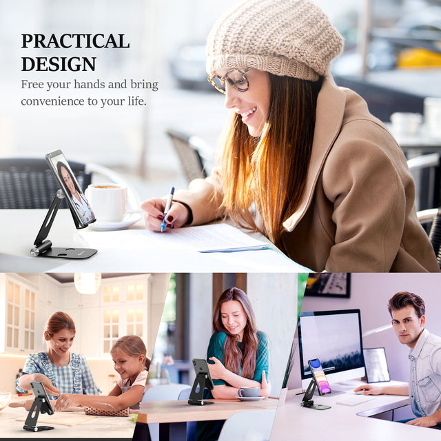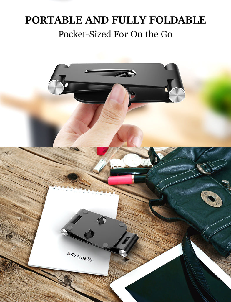Metallic adjustable tablet stand is perfect for playing game, watching videos, viewing photos, reading, typing, video recording and you can charging your devices at the same time. Extremely lightweight and pocket-sized, folds up to a completely flat shape, easily thrown onto a rucksack/bag. Compatible with all Tablets(6-13 Inch), Smartphones, and E-reader, will fit tablet / phone with most cases or sleeves.